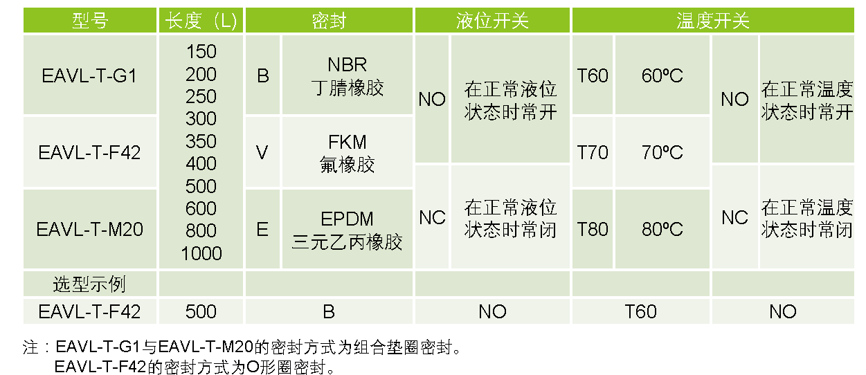 EAVL-T 根据您的需求来选择配置EVOTEK产品。进入“选项”来查看产品的配置。 表1 选择一个选项F42G1M20 表2 选择一个选项6001502001000250300400500800 表3 选择一个选项BVE 表4 选择一个选项NCNO 表5 选择一个选项T60T70T80 表6 选择一个选项NONC清除 数量 加入购物车 添加至报价单已添加至报价单从报价单中删除已添加至报价单从报价单中删除 描述 描述 产品描述选项工程制图下载产品描述 液位液温开关(EAVL-T 系列) 工作温度:-20°C至80°C 电气连接: DIN43650A 防护等级: IP65 关于产品的问题? 联系我们 选项 工程制图 下载 英文产品数据表下载 中文产品数据表下载