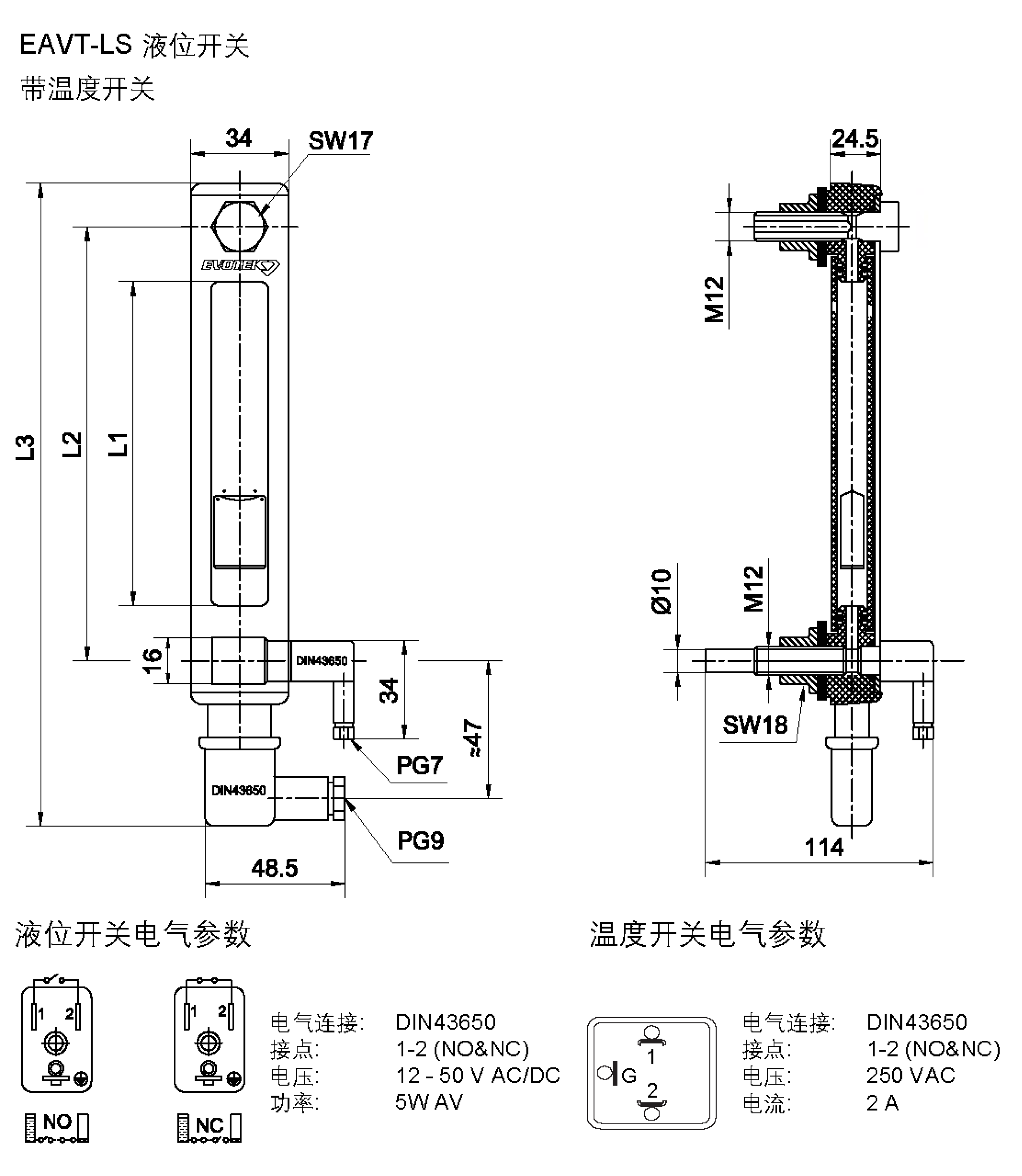 液位开关可带温度开关(EAVT-LS 系列)