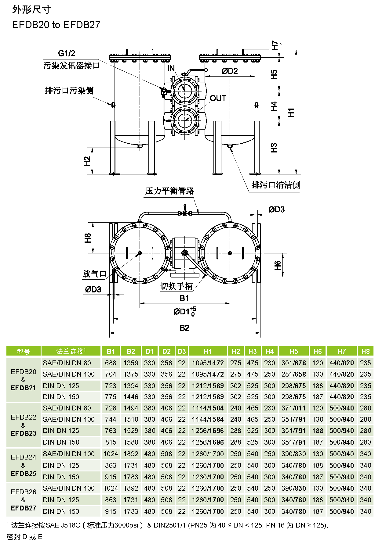 指示器设定压力:ΔP = 2 bar ±10%