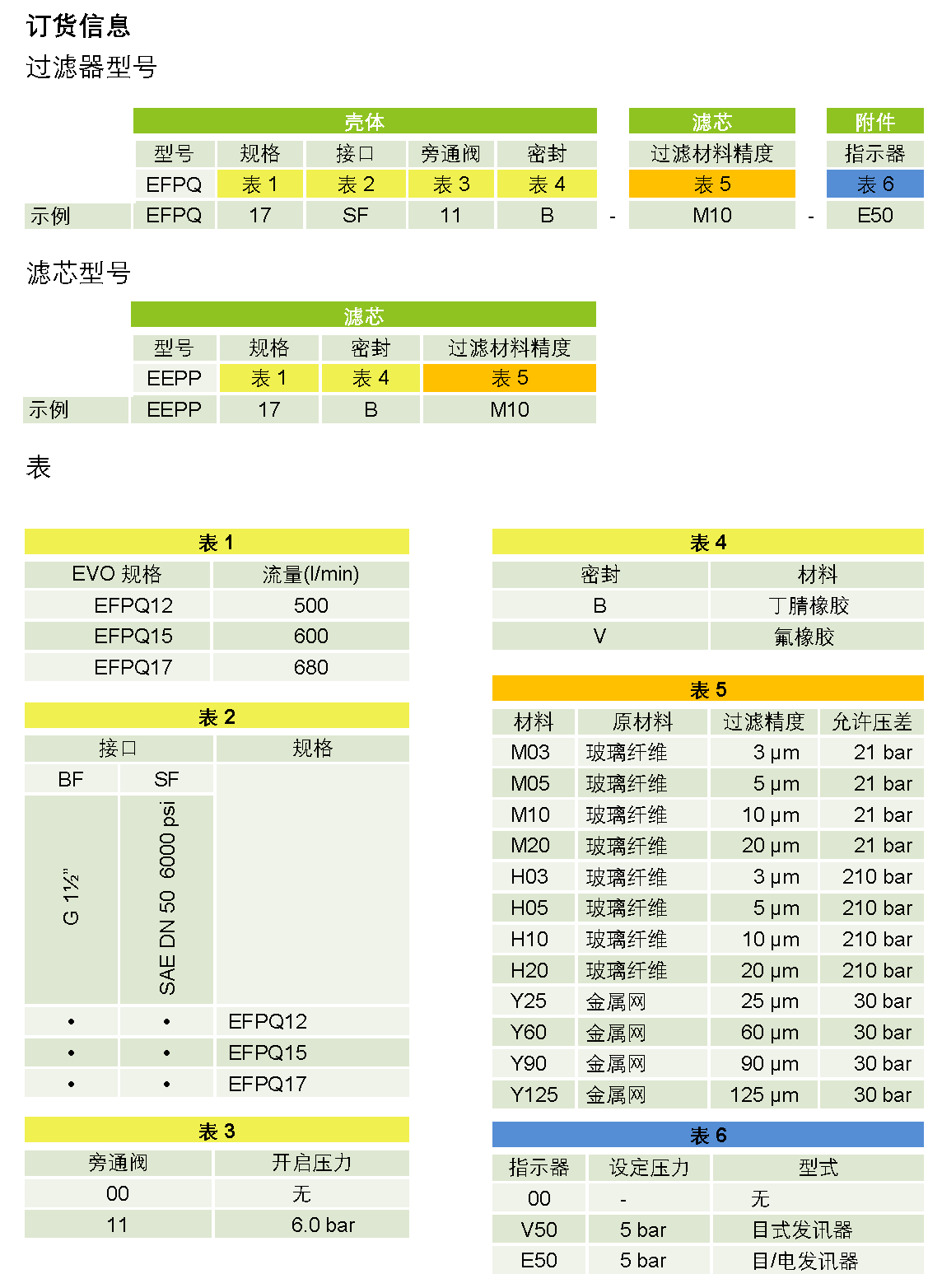 滤芯压差:21 bar或210 bar(玻璃纤维),30 bar(金属网)