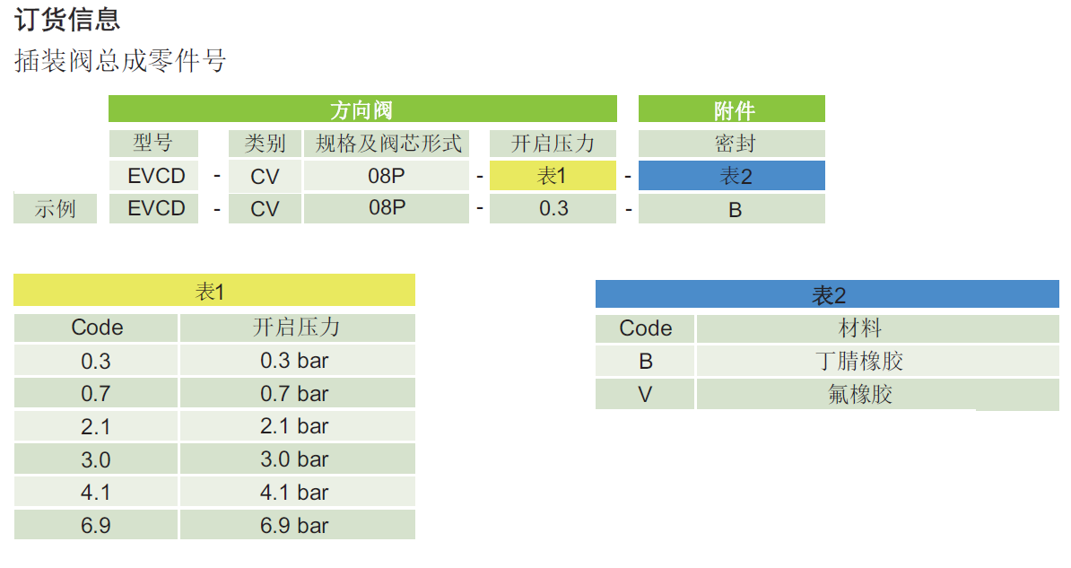 EVCD-CV08P 根据您的需求来选择配置EVOTEK产品。进入“选项”来查看产品的配置。 表1 选择一个选项0.30.72.13.04.16.9 表2 选择一个选项BV清除 数量 加入购物车 添加至报价单已添加至报价单从报价单中删除已添加至报价单从报价单中删除 描述 其他信息 用户评论 (0) 描述 产品描述选项技术性能参数工程制图下载产品描述 技术参数 工作压力:250Bar 流量:20L/min 内泄漏:在350Bar时,最大为2滴/min 温度:-30°C to+120°C(-22°F to+250°F) 插孔:VC08-2插孔 油液及粘度:矿物油或具有润滑性的合成油液;粘度7. 4 to 420cSt. 产品特性 零件硬化处理,耐久性强 工业通用插孔 低泄漏 结构紧凑,体积小 工作原理 当在①口的压力超过开启压力,①到②开启;在反方向,②到①关闭。 关于产品的问题? 联系我们 选项 技术性能参数 工程制图 下载 英文产品数据表下载 中文产品数据表下载 其他信息 表1 0.3, 0.7, 2.1, 3.0, 4.1, 6.9 表2 B, V 评论 目前还末有评论 成为第一个评论 “EVCD-CV08P” 的人 取消回复您需要在 登录后发表评论。.