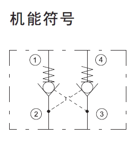 此阀有2.5:1的控制比,所以在②口或③口的压力超过④口或者①口的负载压力的1/2.5时,④到③,①到②打开。