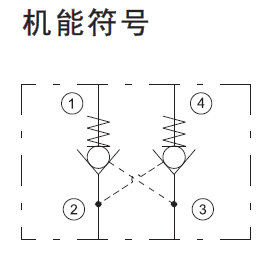 此阀有2.5:1的控制比,所以在②口或③口的压力超过④口或者①口的负载压力的1/2.5时,④到③,①到②打开。