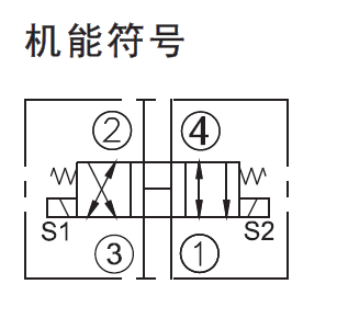 线圈S2通电时,油液可以从③流向②,以及从 ④流向①。