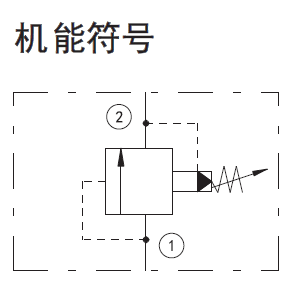先导控制式,平衡滑阀结构溢流阀为常闭压力调节阀。当进口(口1)压力达到阀设定值,阀开始向油箱(口2)溢流,节流以调节压力。