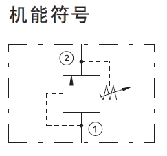 当①口压力超过弹簧设定压力时,锥阀芯打开,①到②开始溢流,防止系统过压。