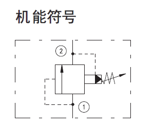 先导控制式,平衡滑阀结构溢流阀为常闭压力调节阀。当进口(口1)压力达到阀设定值,阀开始向油箱(口2)溢流,节流以调节压力。此类阀压力调节精度高,压力波动随流量变化小,并且调节平稳,噪声小,响应速度适中。