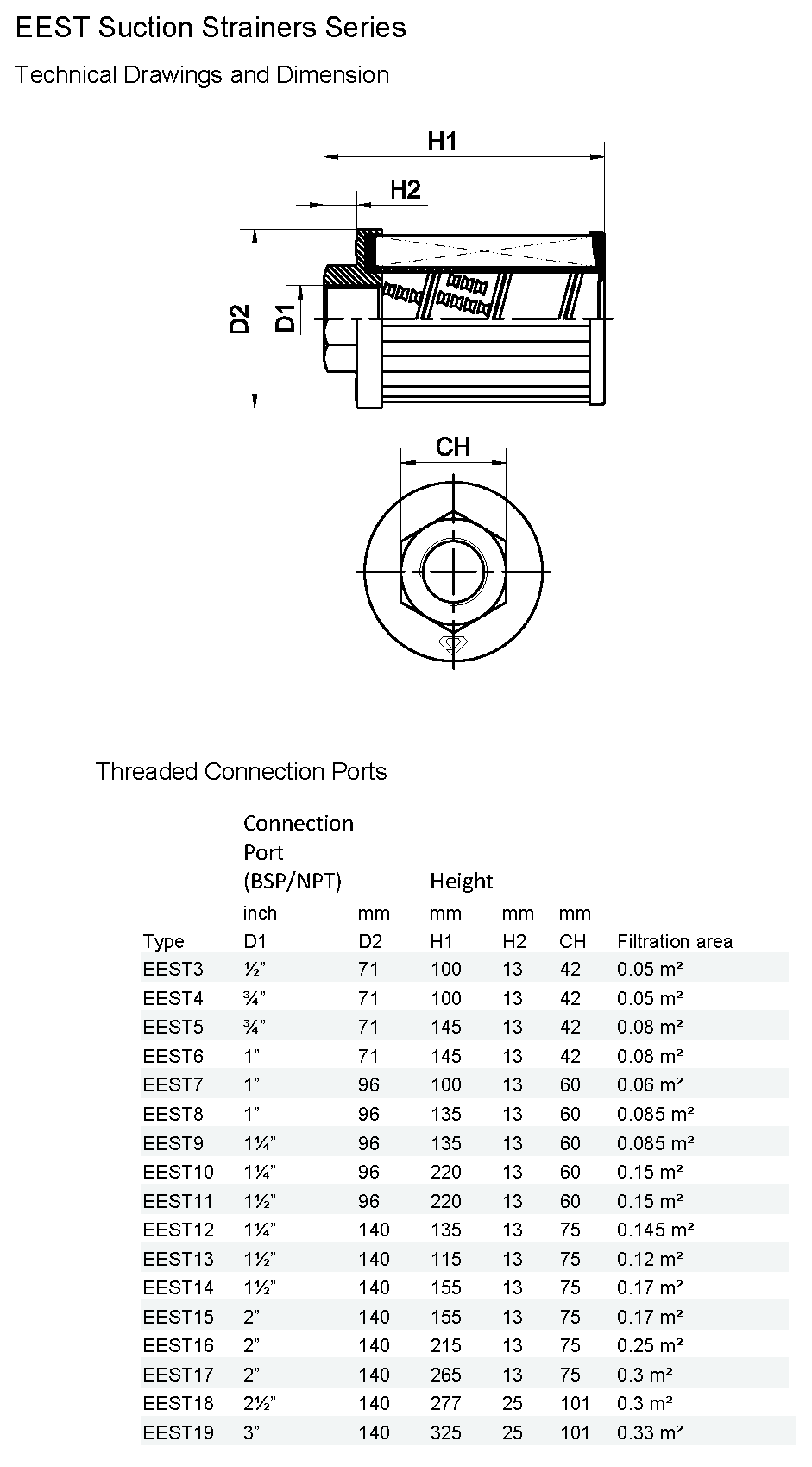 Port Sizes:Threaded Connections according to BSP and NPT standard in ½”to 3”