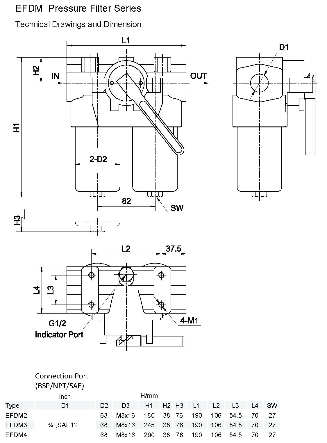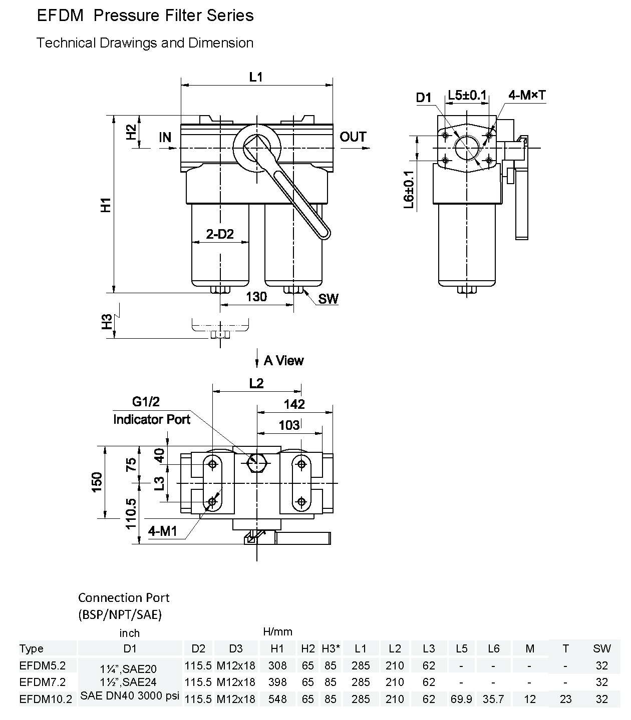 Port Sizes:Threaded Connections according to BSP and NPT standard in ¾”, 1-¼” ,1-½” inch SAE12/SAE20/SAE24 threads Flange Connections in SAE DN40 for 3000psi
