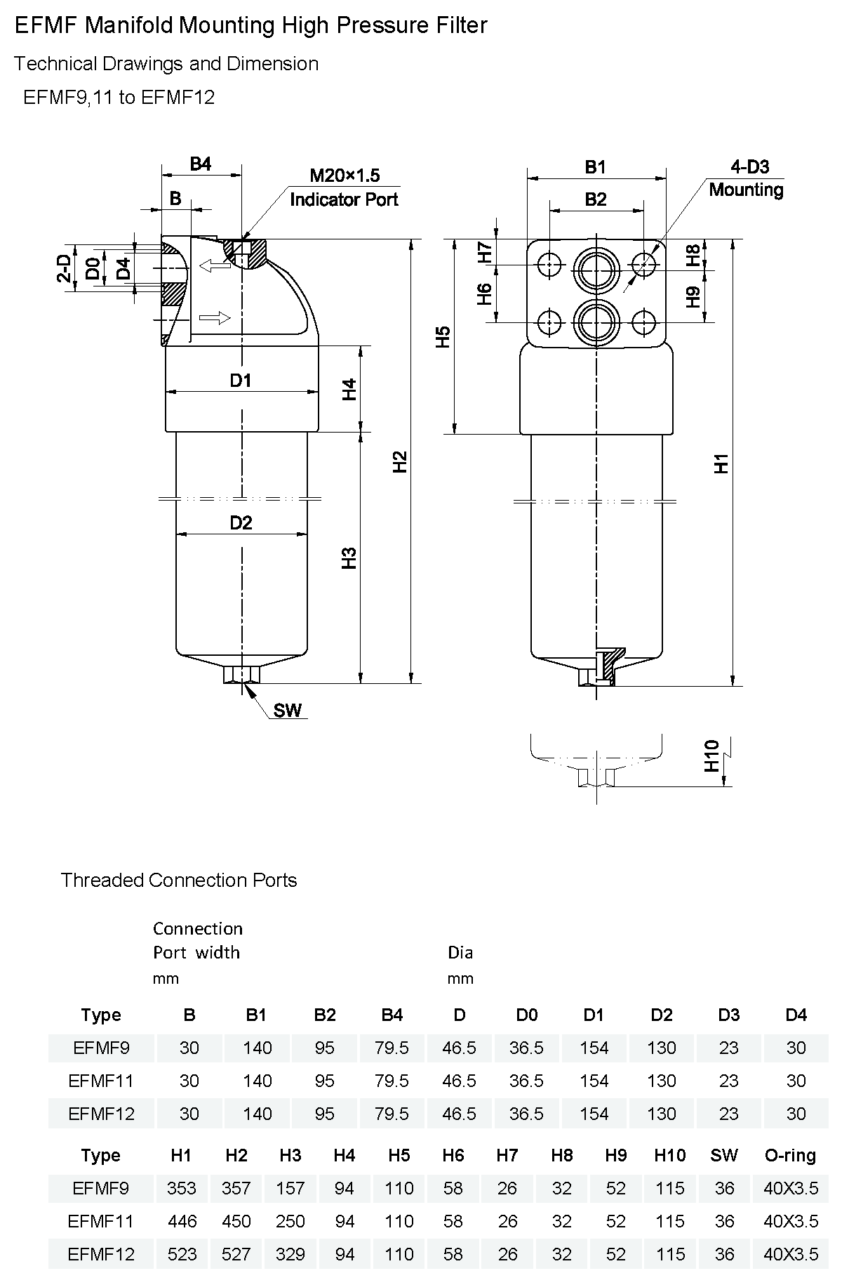 Element Collapse Pressure:21 bar (M series), 210 bar (H series),30 bar Wire Mesh