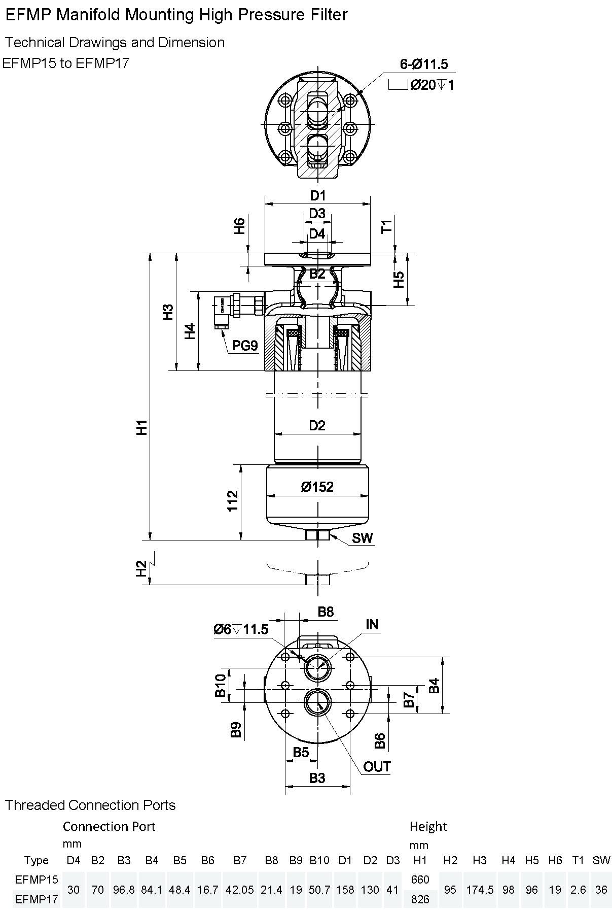 By-pass Opening Pressure:Δp=6 bar +0.6bar