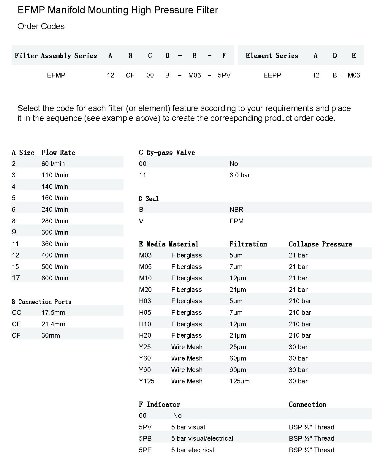 Element Collapse Pressure:21 bar ( M series) 210 bar (H series ), 30 bar Wire Mesh