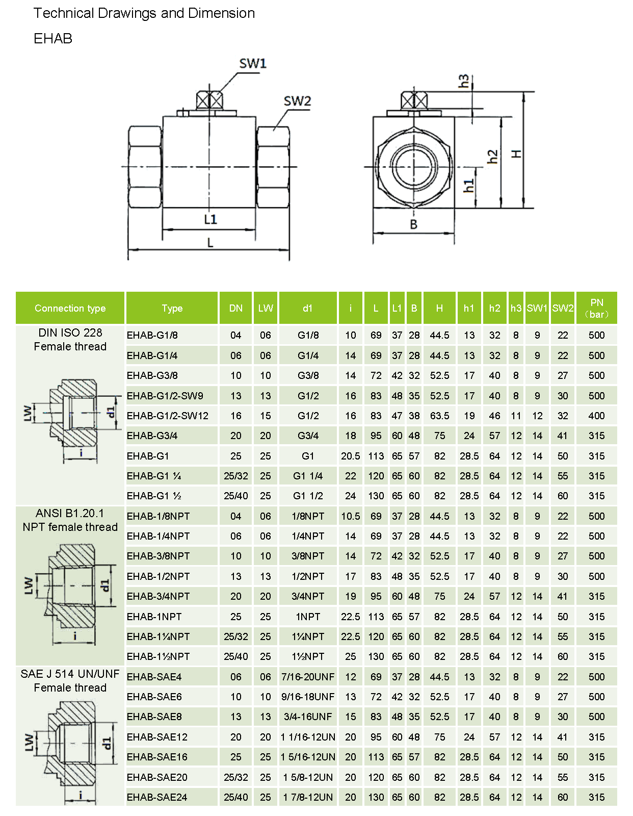 Standard Connections Styles: Female BSP thread (DIN ISO 228)