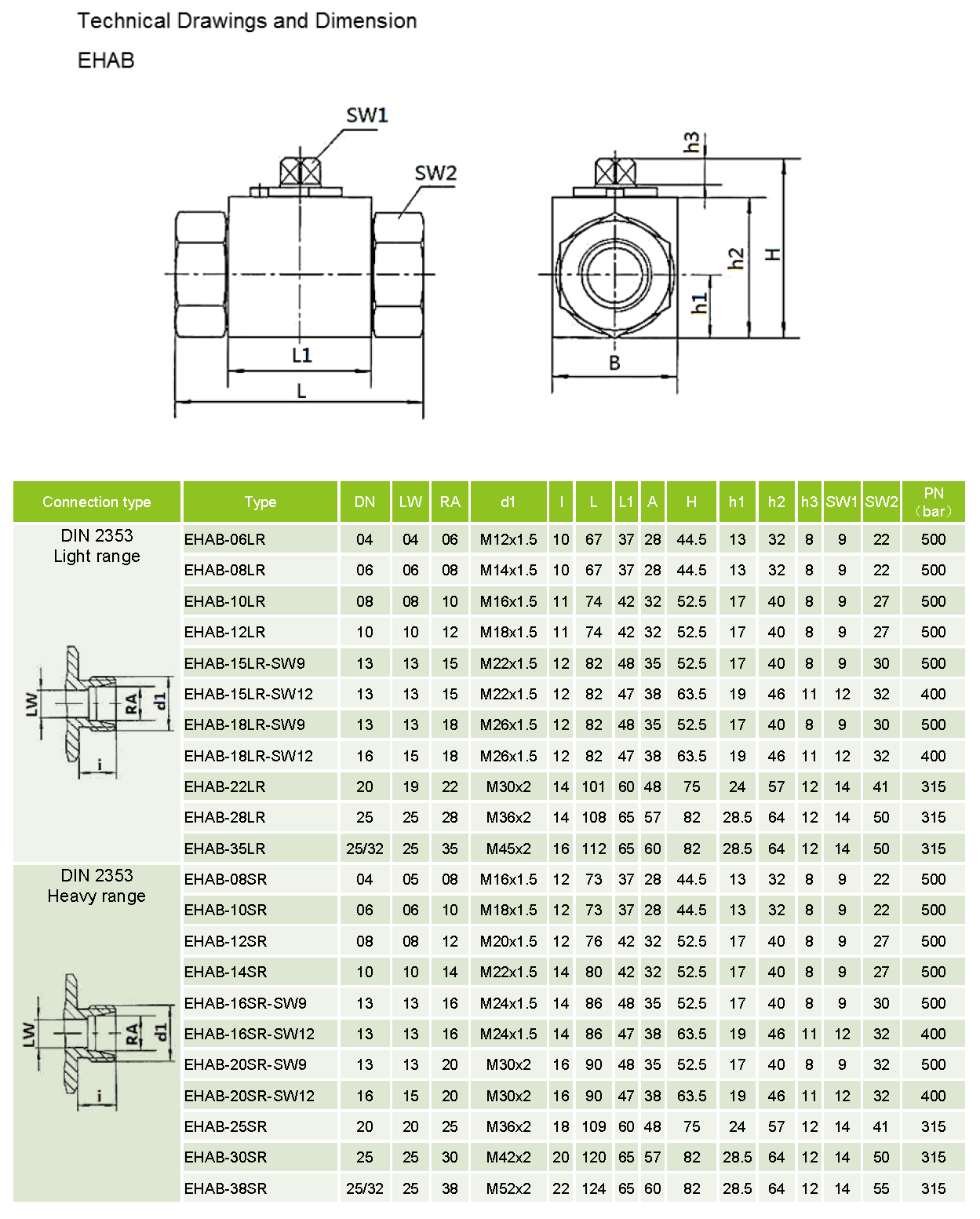 Nominal pressure: PN 315 bar up to PN 500 bar (according to dimension table)