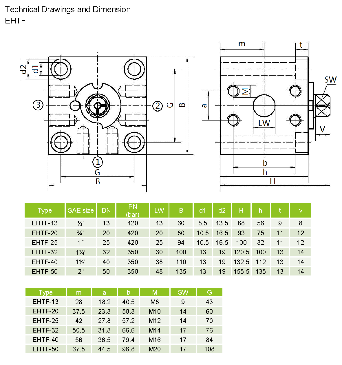 Flange dimensions: ISO 6162, tables 2 (SAE J 518C)