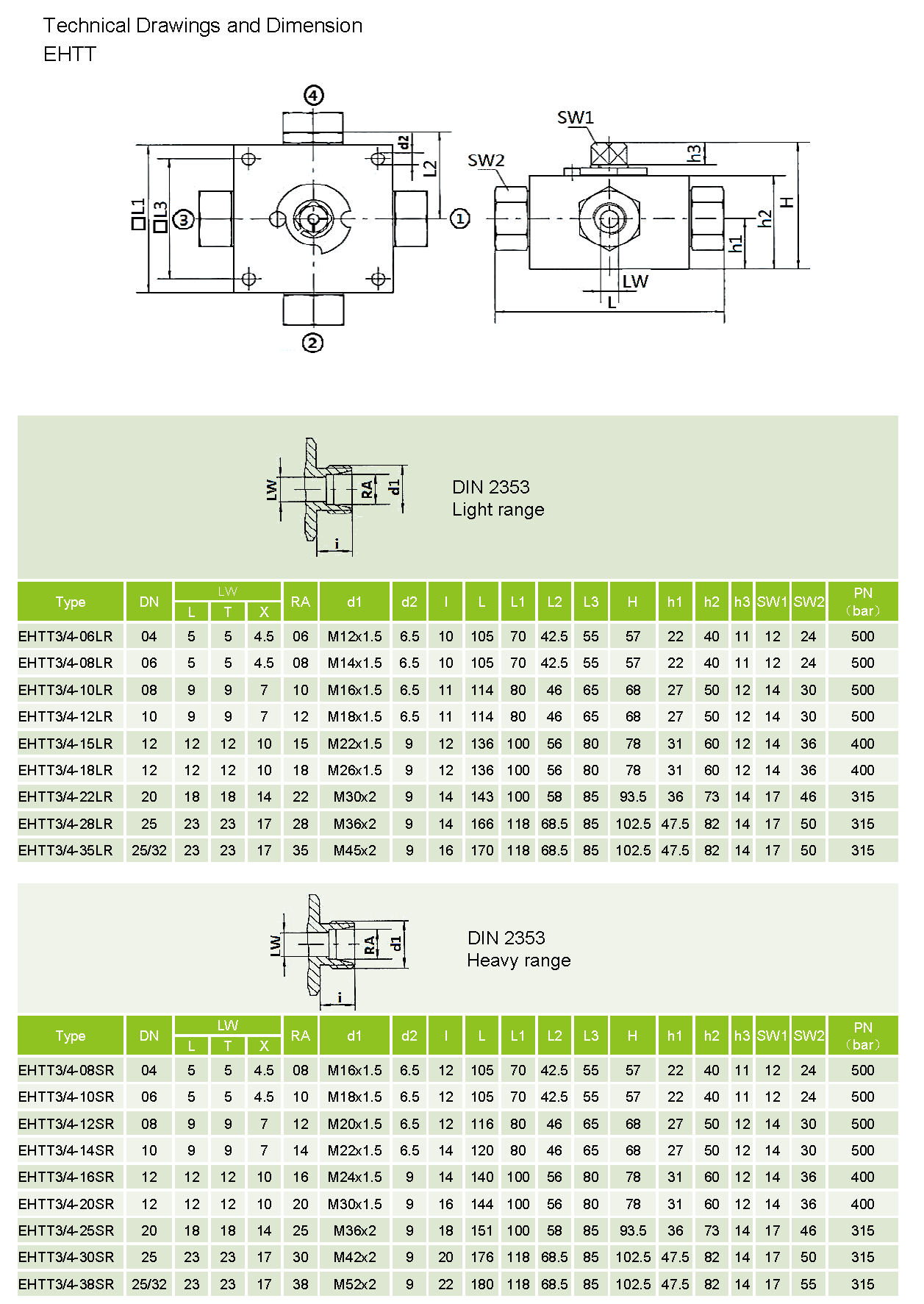 Nominal pressure: PN 315 bar up to PN 500 bar (according to dimension table)