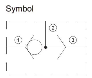 The valve will allow flow from the higher pressure port 1 or 3 to port 2