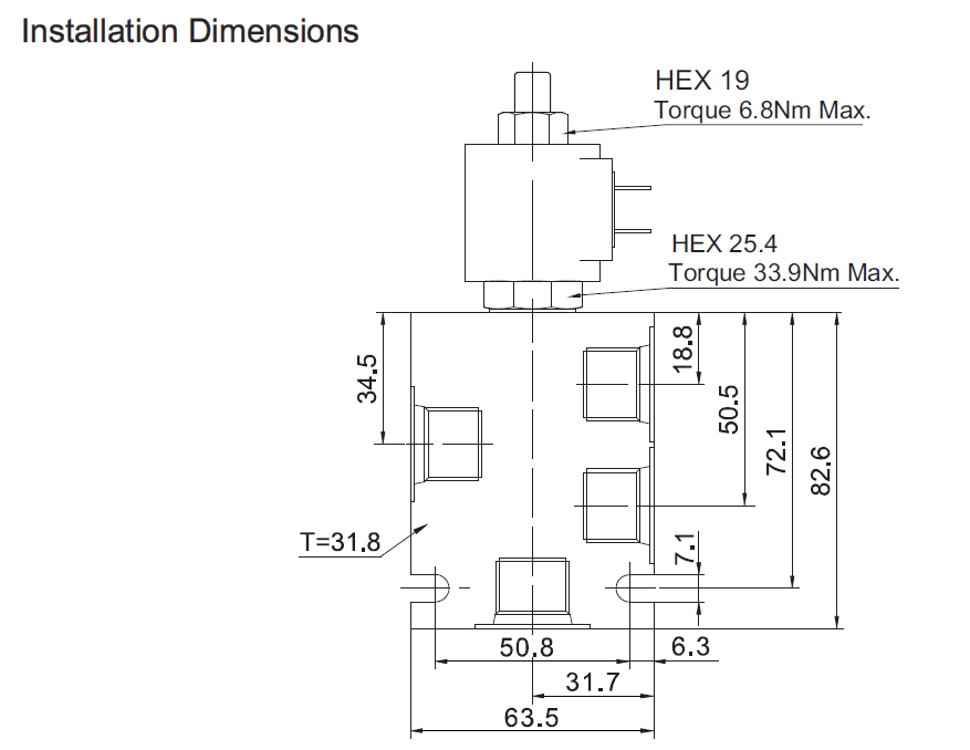 When de-energized, the EVCE-HF08-242 flow paths are port 2 to port 1,and port 3 to port 4.
