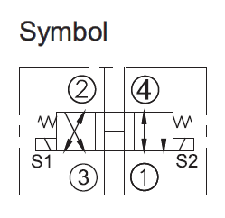 flow is allowed from 3 to 4, and from 2 to 1. When coil 2 is energized, flow is allowed from 3 to 2, and from 4 to 1.
