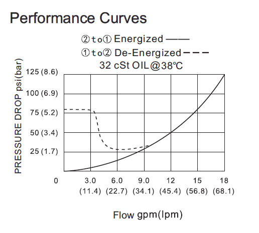 When de-energized, the EVCE-SV2-10-2NO allows flow from port 2 to port 1.Flow from port 1