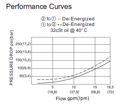When de-energized, the poppet allows flow in both directions. When energized, the