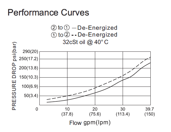 When de-energized, the poppet allows flowin both directions.When energized,the