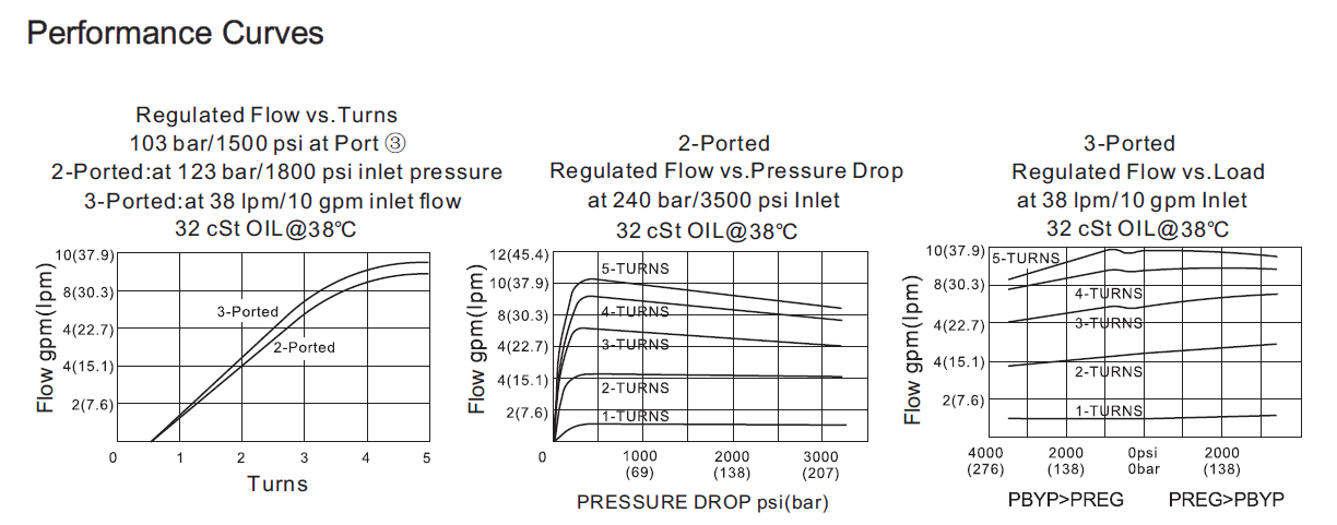 bypass port. Regulated flow increases from closed to fully open with clockwise rotation