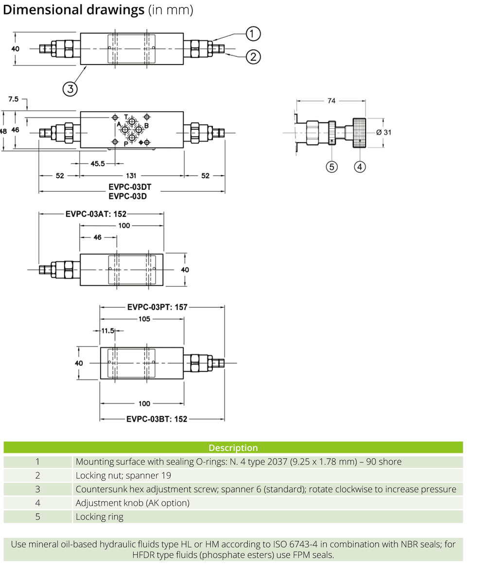 • CETOP03 Pressure relief valve