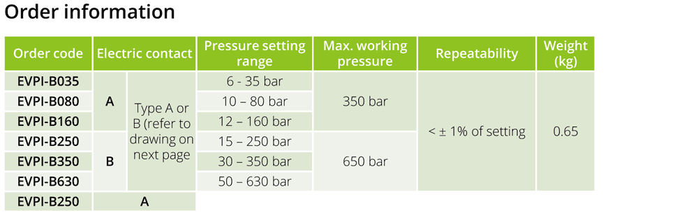 • Pressure settings :6 –630 bar